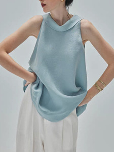 mofeel铜氨丝翻领无袖衬衫微皱垂感A字型法式上衣