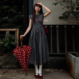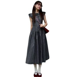小红书爆款法式复古格纹连衣裙子女夏季新款小个子穿搭气质收腰显