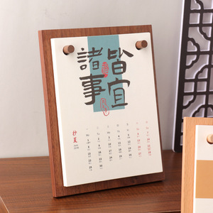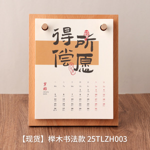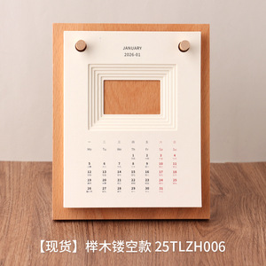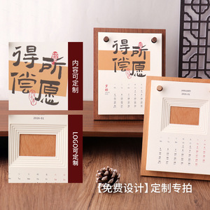 2026新款高档木质台历定制马年台历订制 桌面创意摆件榉木胡桃木
