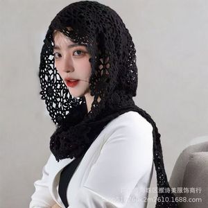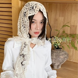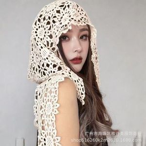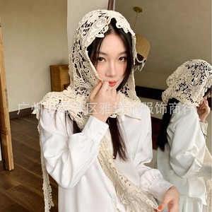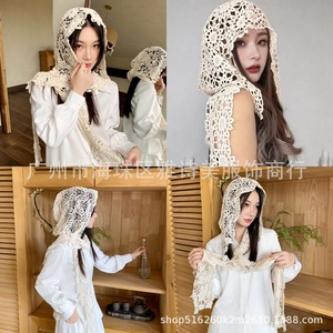 新款田园风棉质四季镂空多用披肩帽子时尚女士旅游打卡遮阳防晒帽