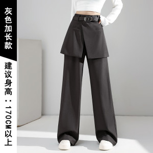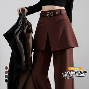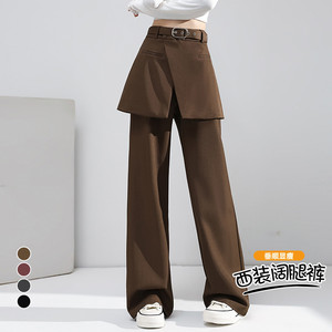 秋季假两件黑色阔腿西装裤女新款设计感显瘦屁帘裙裤直筒休闲裤子