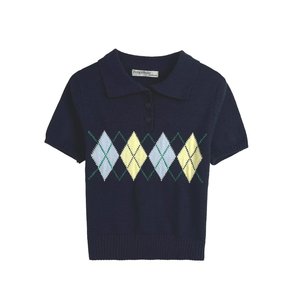Z跨境欧美风2025新款批发时尚气质女学院风菱格短袖针织衫950063