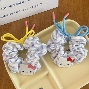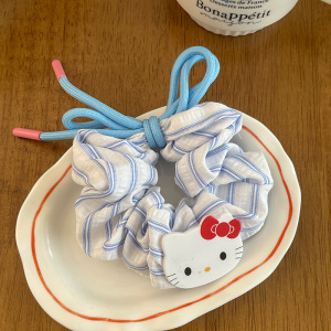 韩系KT猫咪蝴蝶结大肠圈发绳清爽蓝条纹大号发圈头绳丸子头皮筋