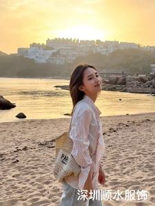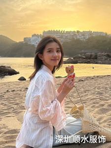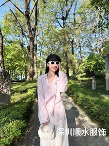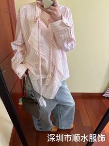 Med纯手工重工不规则麻花飘带钉珠粉色条纹衬衣