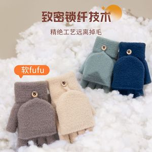 半指手套针织男女新款防寒保暖翻盖冬季纯色仿貂绒学生写字手套