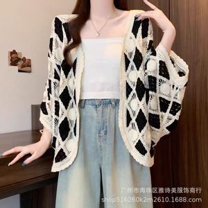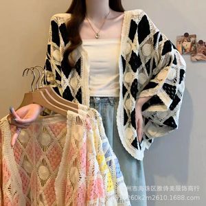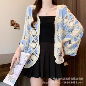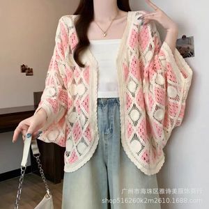 清新甜美外搭宽松百搭披肩外套女海边度假风蝙蝠袖钩花镂空针织衫