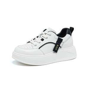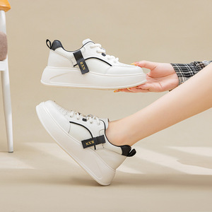 头层牛皮休闲板鞋女2025秋季新款厚底增高小白鞋百搭运动鞋显脚小