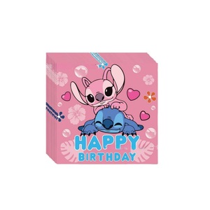 新款粉色史迪仔主题儿童生日派对一次性纸盘纸杯纸巾桌布餐具套装