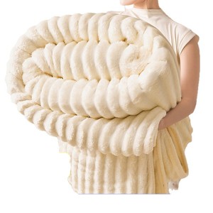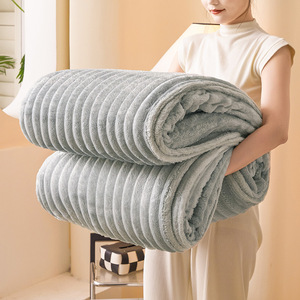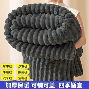 跨境兔绒抽条撸猫感冬天保暖毯子双面加绒毛毯铺床盖两用牛奶绒毯