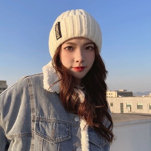 帽子女秋季韩版百搭毛线帽冬天时尚字母贴标情侣保暖护耳包头帽子