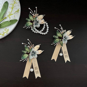 绿惠兰蝴蝶兰伴郎伴娘襟花结婚婚礼胸花新郎新娘商务活动磁吸胸针