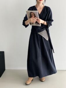 那末韩系莱赛尔不规则拼接半身裙女复古日系气质小众花苞裙5039-1