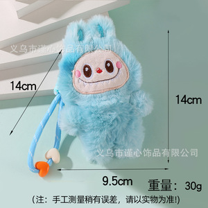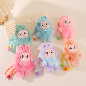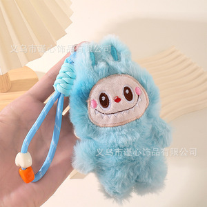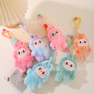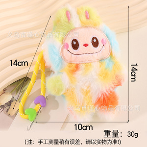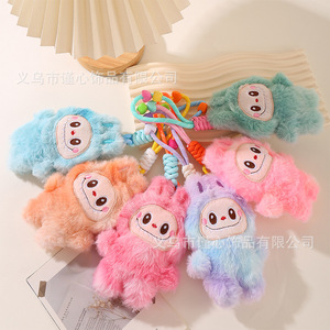新款大号扎染三代labubu公仔挂饰毛绒泡泡玛特拉布布包包挂绳挂件