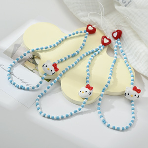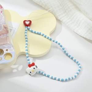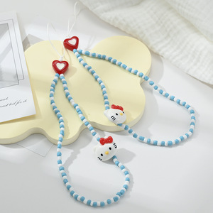可爱卡通kt猫手机挂绳ccd相机手腕链手工串珠链条钥匙挂绳少女款
