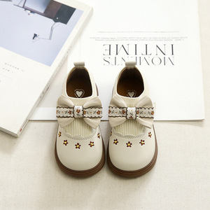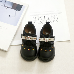 女童皮鞋秋冬新款宝宝松紧带蝴蝶结单鞋软底公主鞋幼儿园鞋子批发