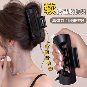 新款硅胶抓夹高级感盘发后脑勺风衣架款纯色鲨鱼发夹简约橡皮质感