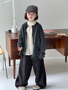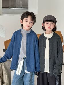 2025秋季新款韩版儿童设计款时尚针织开衫男女童慵懒风毛衣外套潮