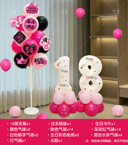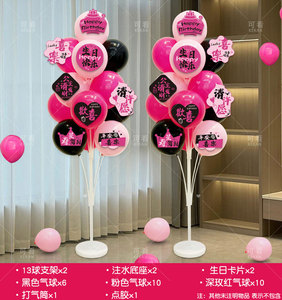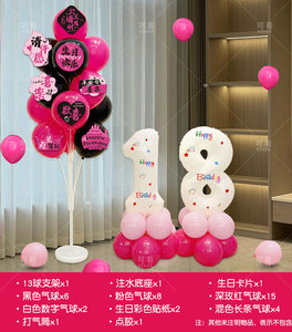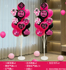 黑玫粉生日地飘+生日卡片+数字立柱【年龄】