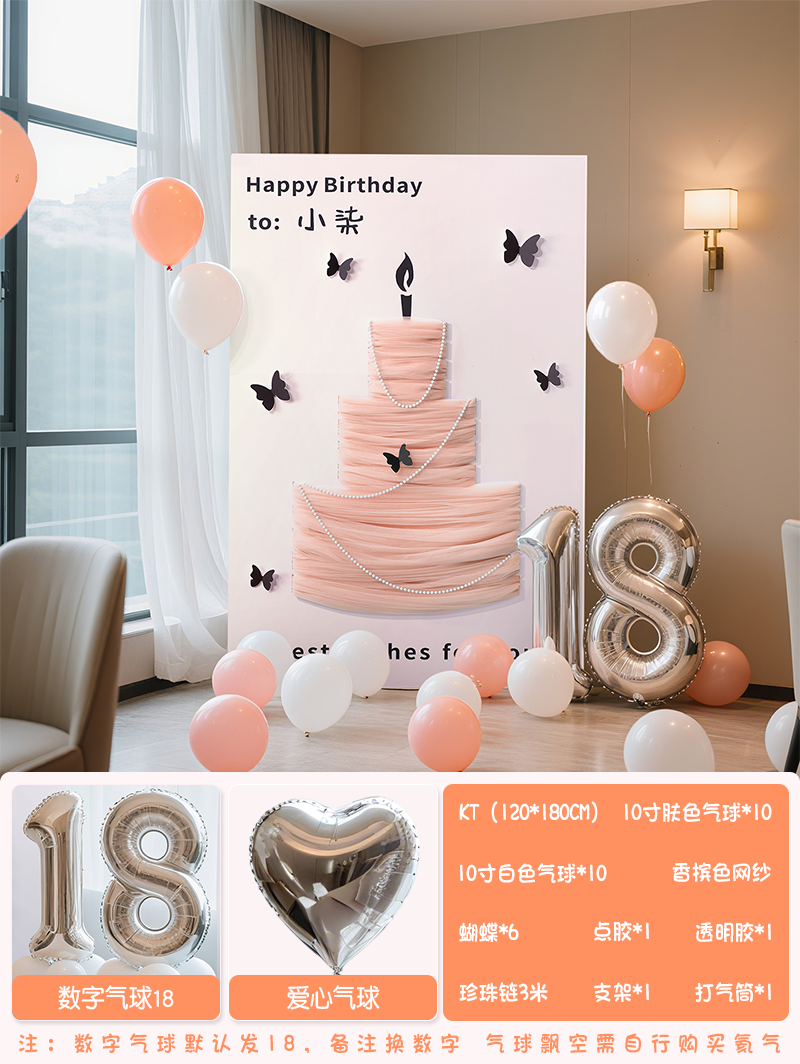 生日快乐布置场景装饰女孩18岁成人礼感氛围道具背景kt板