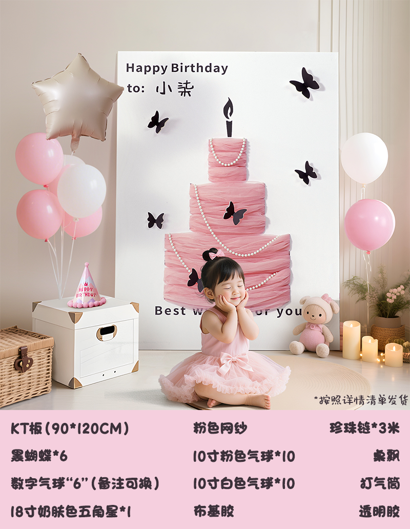 【小尺寸】网纱蛋糕KT板A+数字气球+桌飘(姓名年龄)