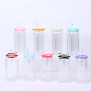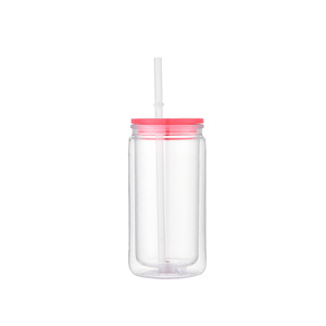 跨境双层16oz塑料吸管水杯大容量户外便携车载随手梅森塑料杯批发