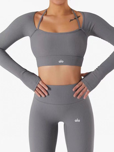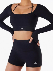 现货高版本alo瑜伽服套装长袖上衣女带胸垫运动高腰短裤时尚休闲