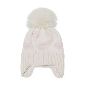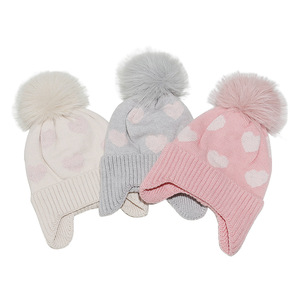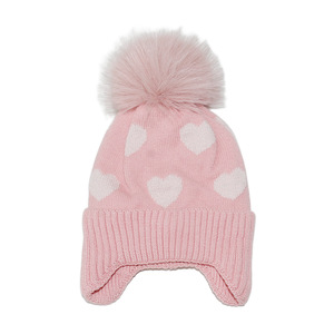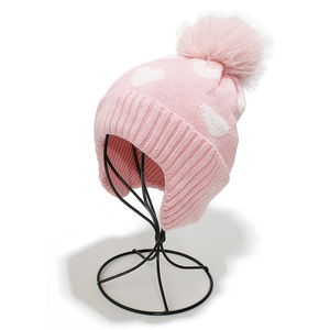 2025秋冬新款毛线帽儿童日系韩版百搭护耳帽保暖冷帽爱心针织帽子