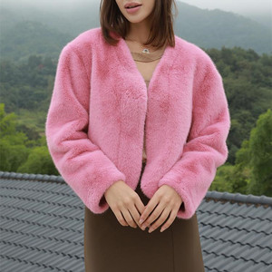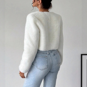 欧美风长袖短款纯色大外套圆领女士仿皮草时尚气质优雅毛茸茸开衫