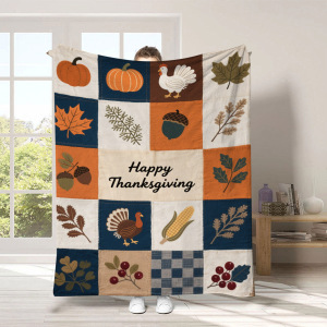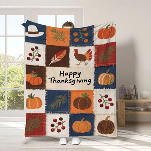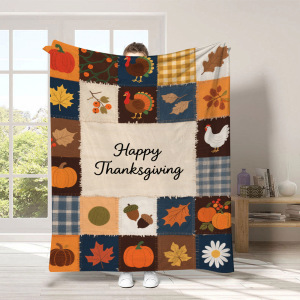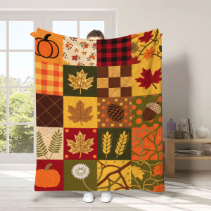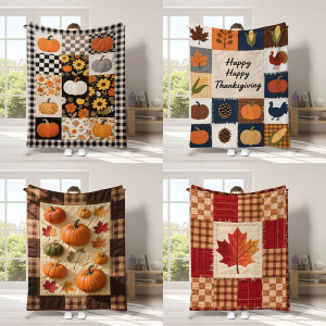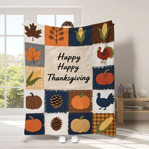 新款跨境感恩节礼物毛毯亚马逊法兰绒毯子午睡a类外贸绒毯tem代发