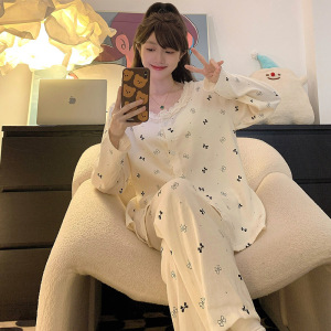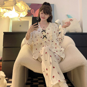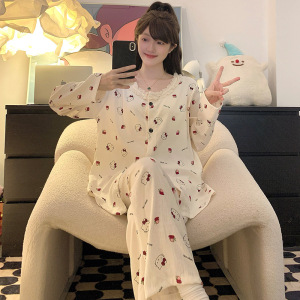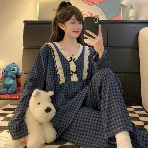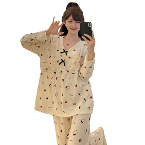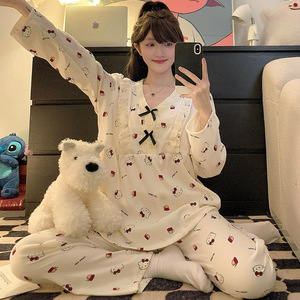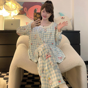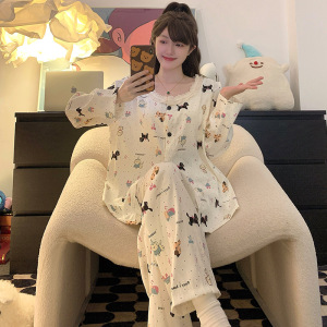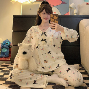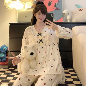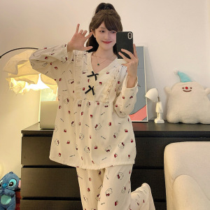胖mm睡衣女春秋季可爱卡通公主风云朵棉长袖大码家居服套装可外穿