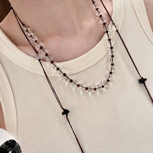 编织绳流苏透明撞色珠珠项链女2025新款高级感时尚配饰毛衣链颈链
