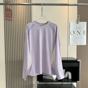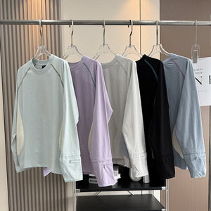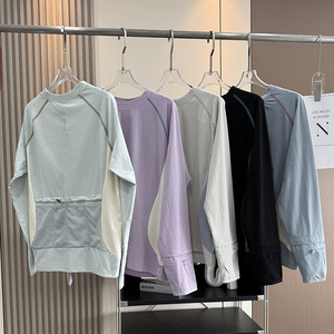 大厂订单!男女情侣款户外骑行训练网眼开袋拼色运动长袖T恤衫秋