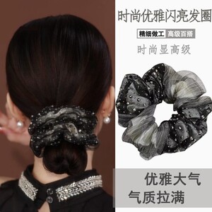 韩版欧根纱发圈满天星镶嵌法式双层水钻甜美气质头花扎头发头绳女