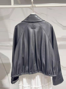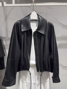 伊*L2025年秋季新款黑色百搭休闲翻领PU皮衣外套女1G8310822