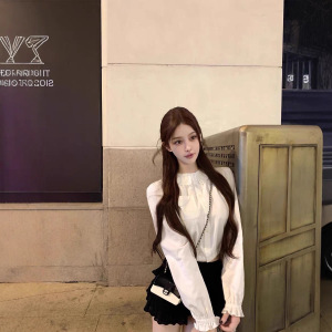 韩雨嘉Kyoto贵女法式荷叶边白色衬衫女气质小衫针织半裙套装