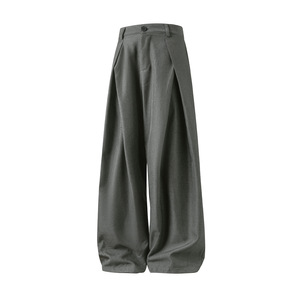 质感混纺打褶垂感休闲西裤男秋季新款潮牌复古廓形宽松百搭长裤子