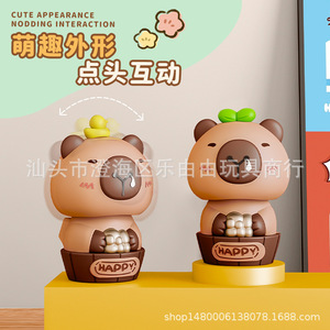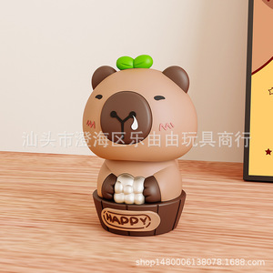 太阳能光感自动点头卡皮水豚桌面小摆件车载蛋糕烘焙娃娃机