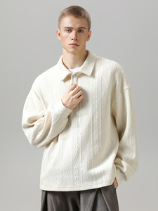 复古老钱风420g重磅质感提花翻领卫衣男秋季款潮牌廓形套头衫外套