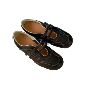 牛皮版~小众新款韩版圆头双带魔术贴休闲鞋玛丽珍百搭平底单鞋女