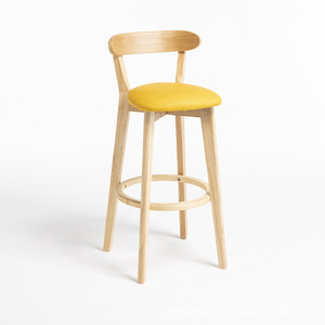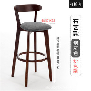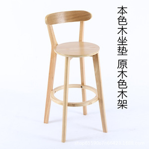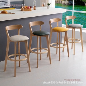 北欧实木家用靠背吧台椅现代简约高脚凳吧台凳奶茶店前台酒吧椅子