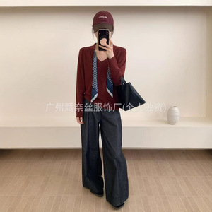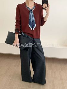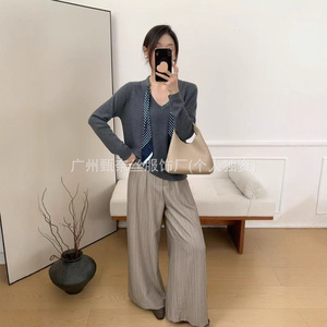 25年流行条纹丝巾飘带v领针织背心夏季女款减龄设计感学院风上衣