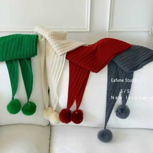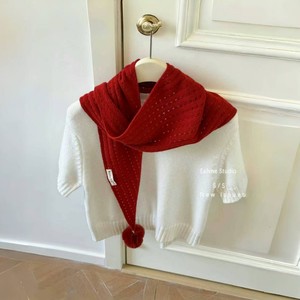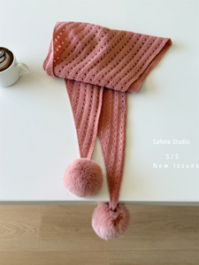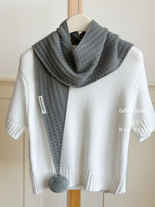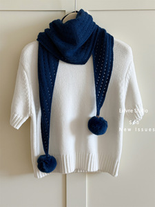 韩版简约新款镂空毛球三角巾披肩女轻奢绵羊毛保暖针织兔毛球围脖