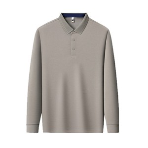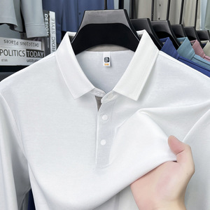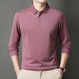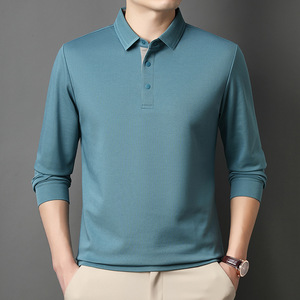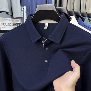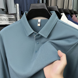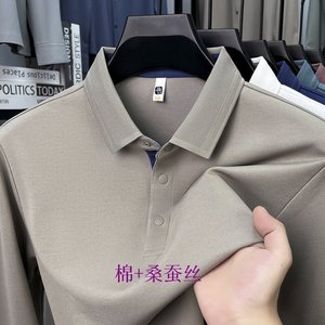高端男士棉质体恤衫春秋季新款长袖t恤男翻领中年爸爸宽松polo衫