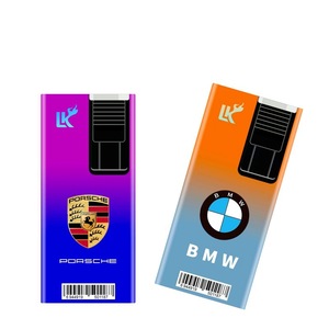 新款网红金属车标充气打火机防风直冲蓝焰创意高档下拉式点火批发