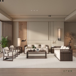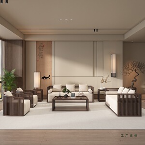 中古风新中式宋氏美学实木沙发组合酒店客厅极简布艺家具现货定