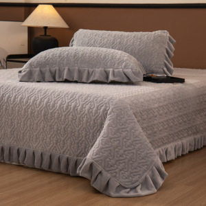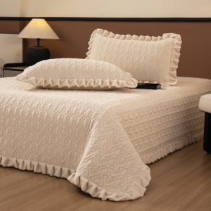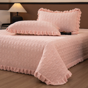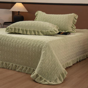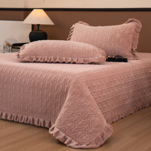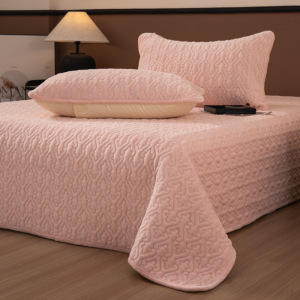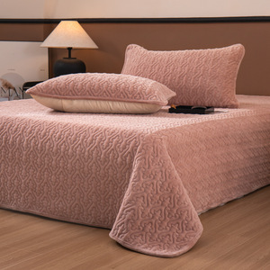 新款纯色宝宝绒床盖秋冬季牛奶绒保暖夹棉加厚床单件盖毯工厂批发
