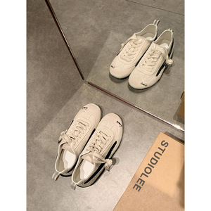羊皮版~2025新款增高3cm时髦博主感刺绣系带圆头赛车德训鞋女
