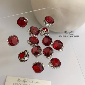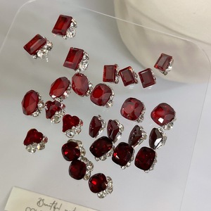 新年款安可拉红美甲饰品成品堆钻红色爆闪爱心直角合金指甲装饰钻