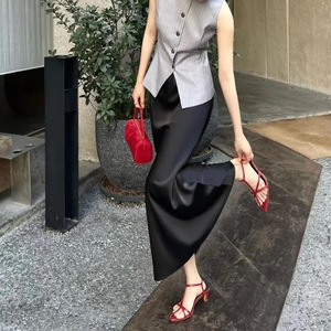 现货厂家批发 大方得体漂亮高JI设计感灰色马甲背心半身裙套装