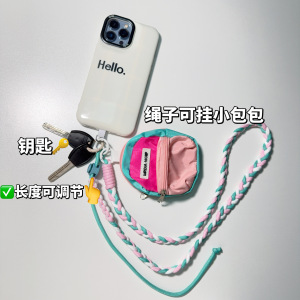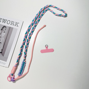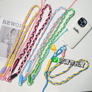 ins 拼接麻花三股辫可调节长度斜跨可背户外登山防丢防盗手机挂绳